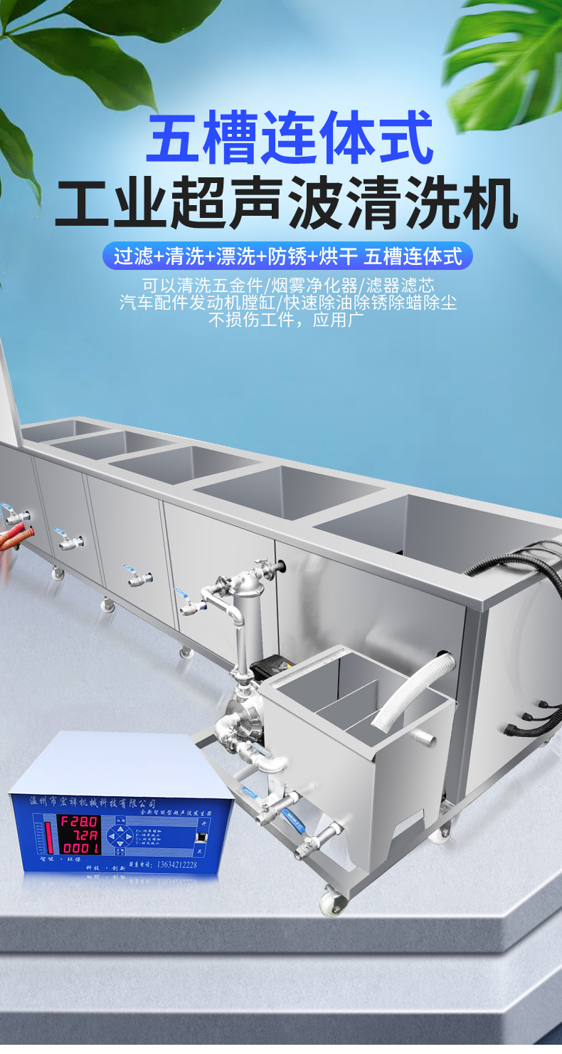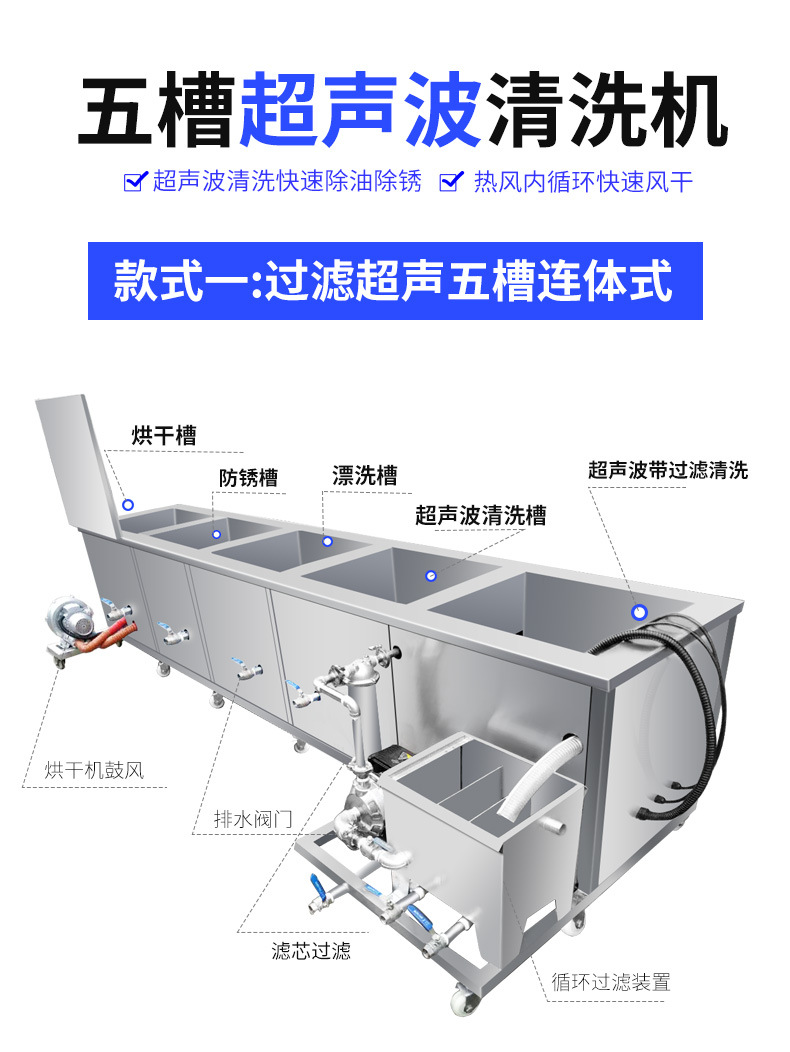 五槽循环过滤超声波清洗机工业大功率汽修发动机实验室用清洁设备