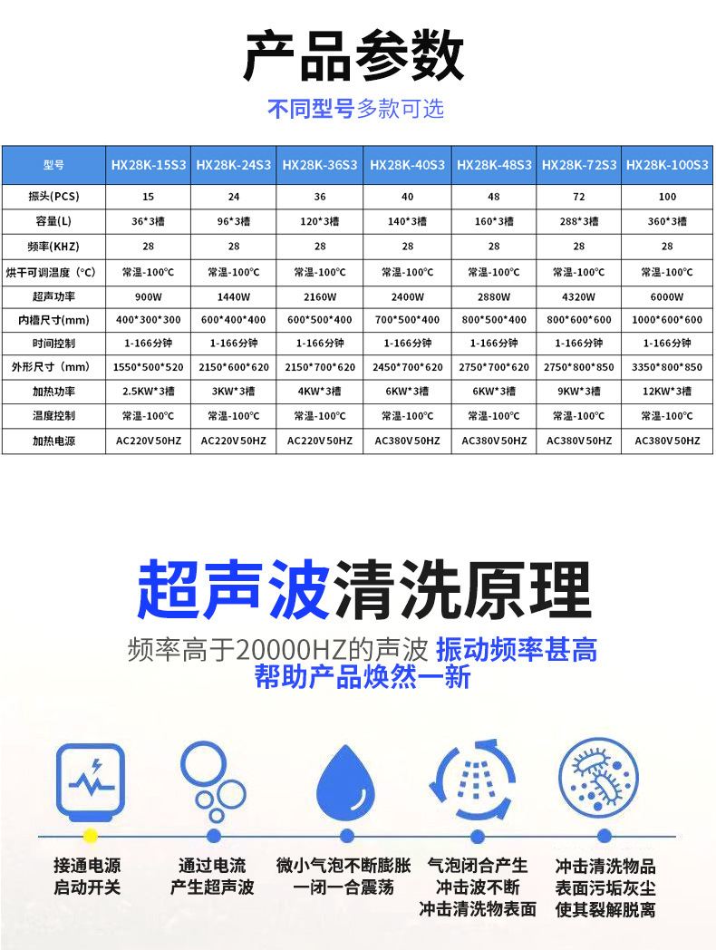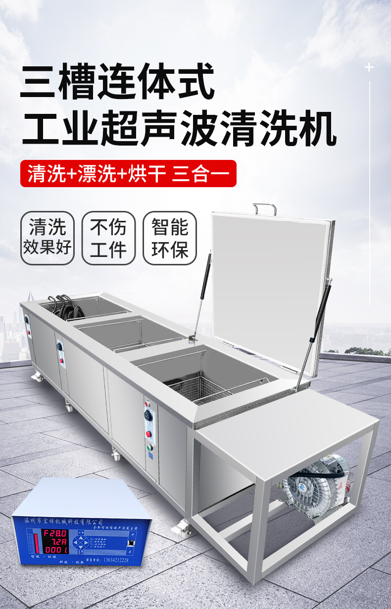 清洗加漂洗加烘干三槽连体式工业超声波清洗机五金属件除油污锈蜡